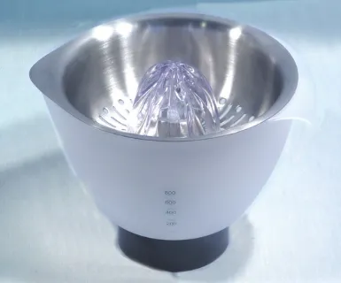 El exprimidor de cítricos garantiza que cada gota de la fruta se recoja en el recipiente de 600 ml. Las frutas cítricas se utilizan en muchos platos para mejorar el sabor y darle un toque a muchas recetas. Vierte el jugo directamente desde el recipiente con la boquilla y el mango de fácil vertido. El colador de acero inoxidable garantiza que no se escape nada de pulpa ni ninguna semilla al zumo. recipiente fácil de verter.