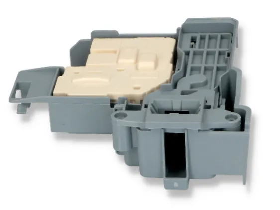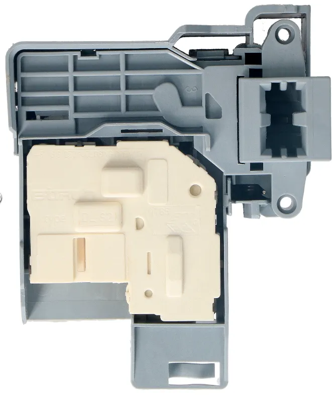 Retardador para cierre de puerta de electrodoméstico de lavado. Esta pieza también hace de interruptor, evitando que el aparato se ponga en marcha cuando la puerta está abierta. En ocasiones, cuando la lavadora no funciona, es porque este recambio está mandando una señal equivocada al módulo del electrodoméstico.