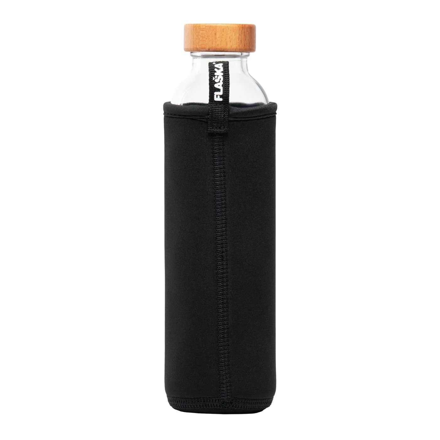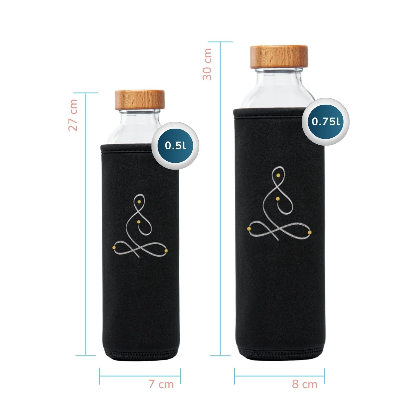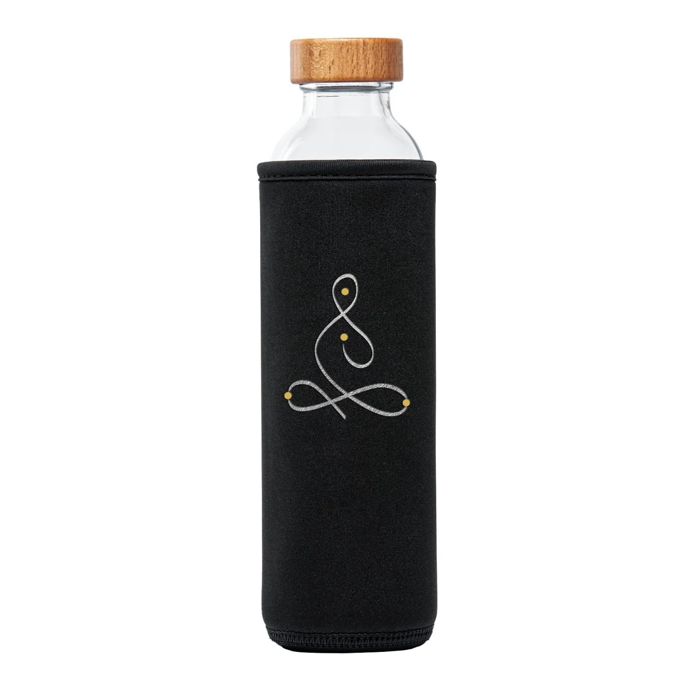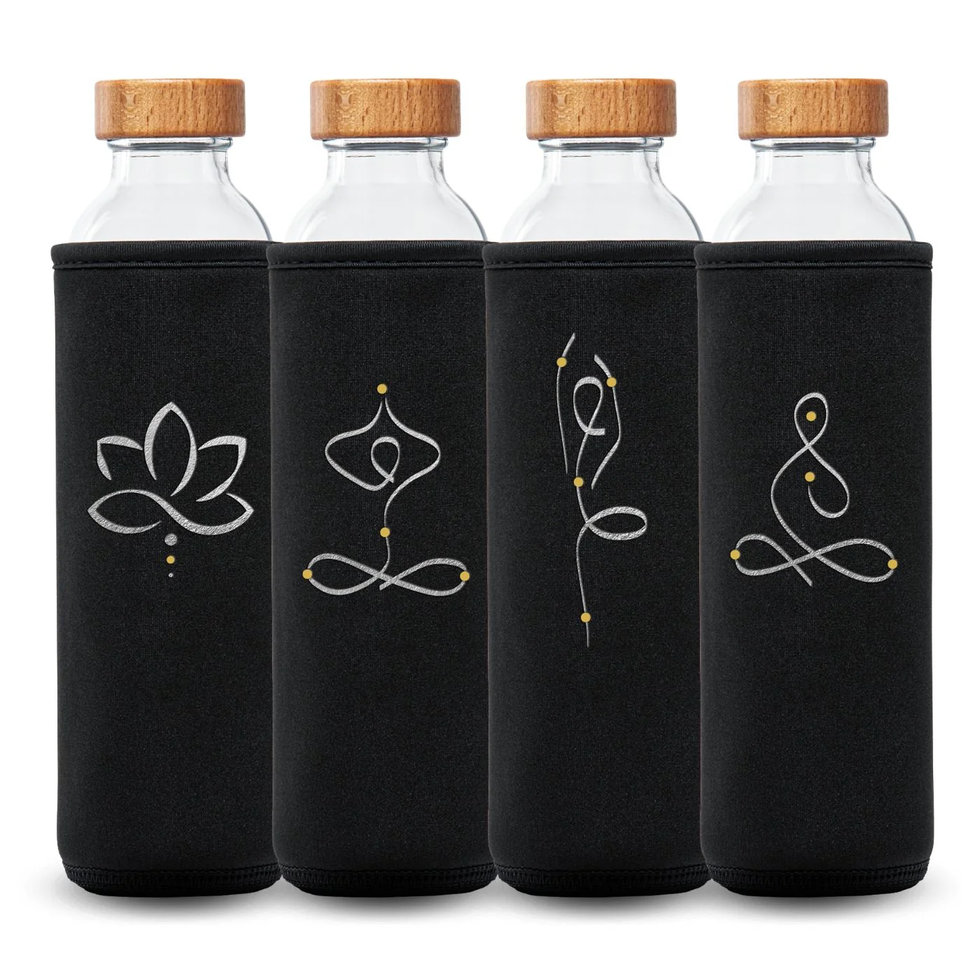 Flaska YOGA con su funda de neopreno que la protege frente a golpes y cambios de temperatura, y diseños de posiciones de YOGA
