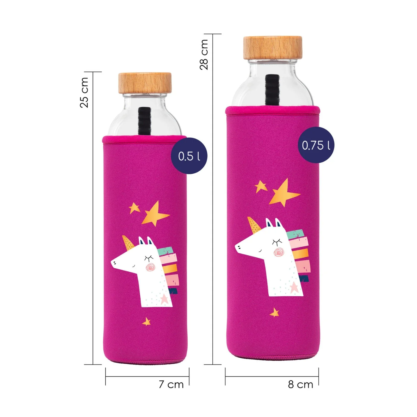 Botella Flaska con tapon de rosca y funda de neopreno Unicornio