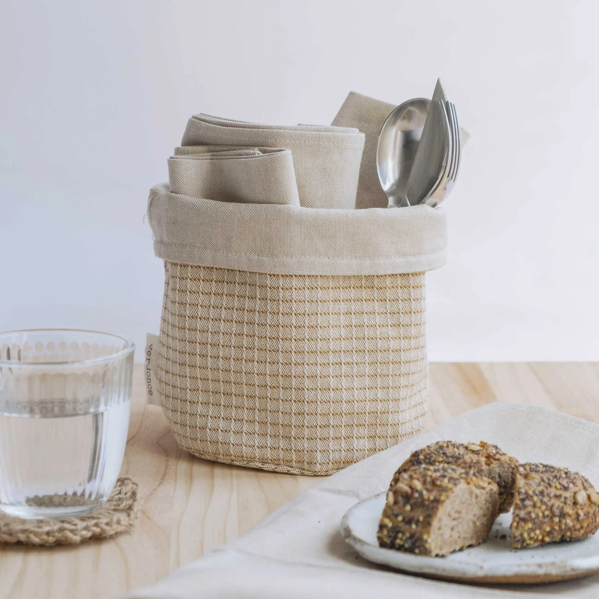 Cesto para tu hogar eco. Ideal como panera o como organizador de básicos. ¡Es reversible! El cesto Verdonce, está confeccionado con ética en España con los mejores materiales sostenibles, sin químicos ni plástico.
