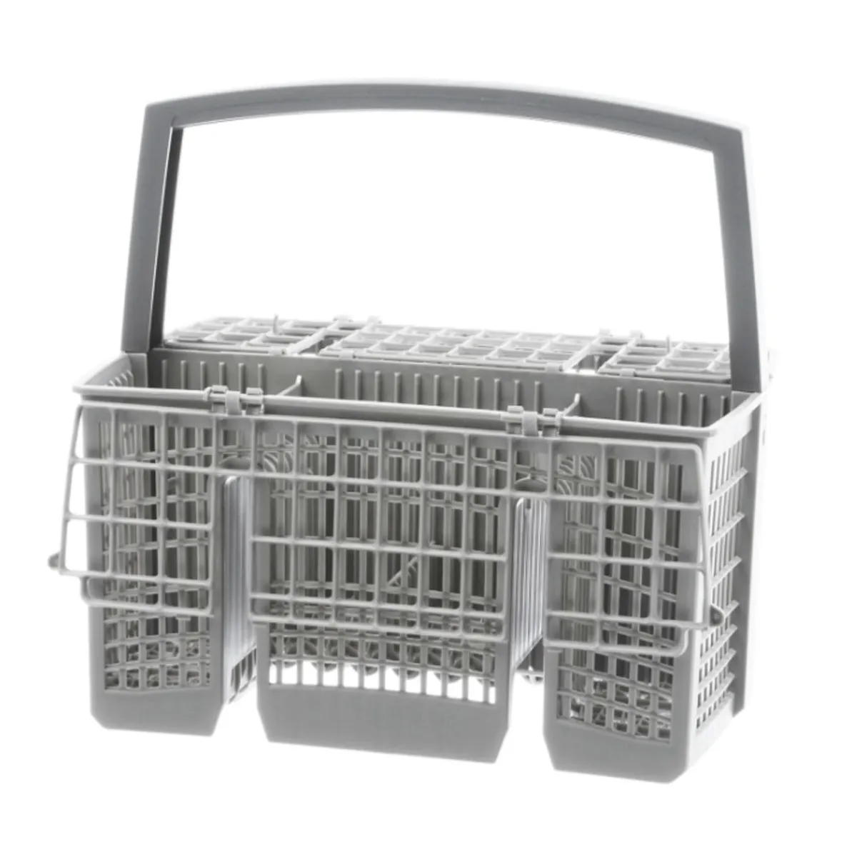 Pieza de recambio para lavavajillas. Este cesto se coloca en la bandeja inferior de electrodoméstico y en él se colocan cubiertos y objetos pequeños.