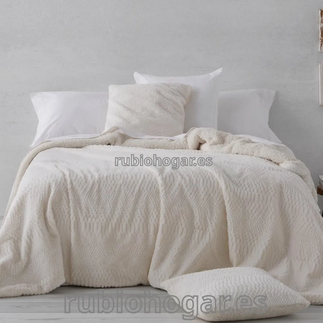 Colcha edredón con tejido de borreguito en el interior.