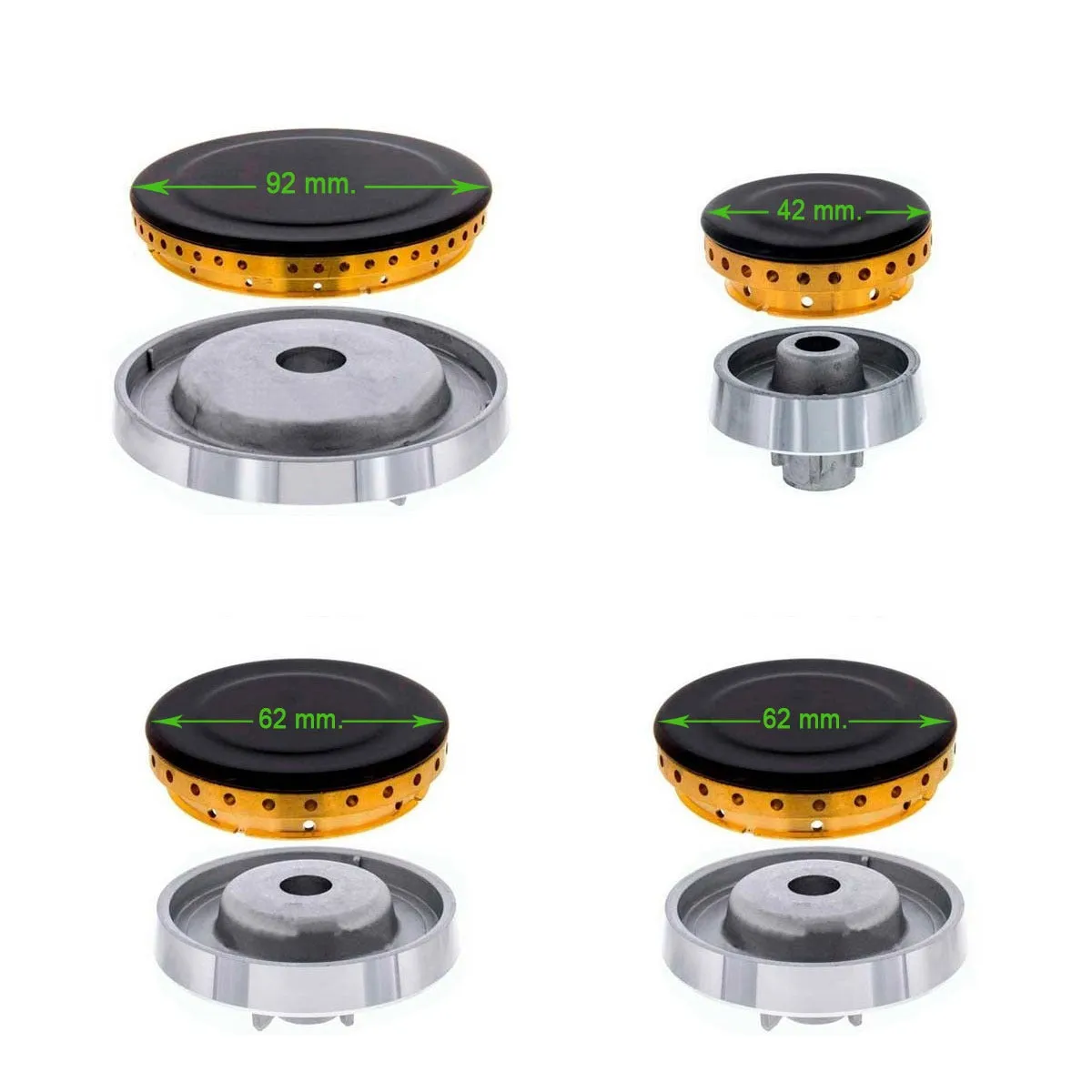 Conjunto 4 tapetas y bases para quemadores Teka, Fagor, Balay cocina de gas. Este conjunto de piezas incluye: