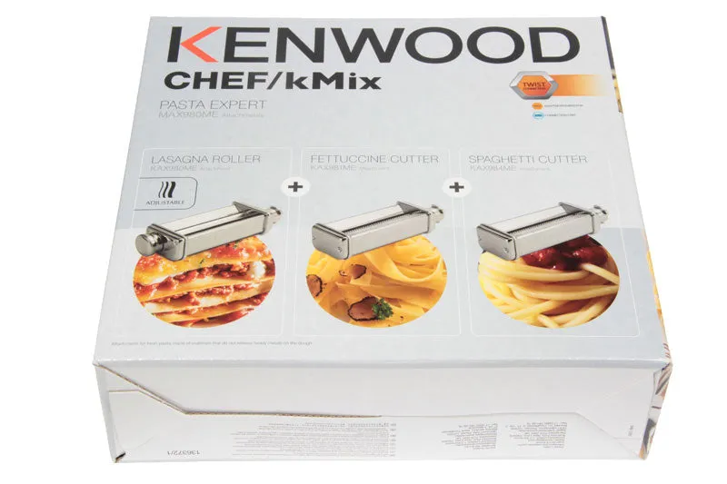 Conjunto de tres accesorios para hacer pasta. Piezas de recambio originales para procesador de alimentos Kenwood Chef y KMix.