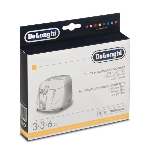 ¡Aquí tienes el increíble juego de filtros para freidoras! Compatible con los modelos De’Longhi F8, De’Longhi D8 y De’Longhi F1000. Este juego de filtros contiene tres tipos diferentes que te serán de gran utilidad para disfrutar al máximo de tus freidoras.