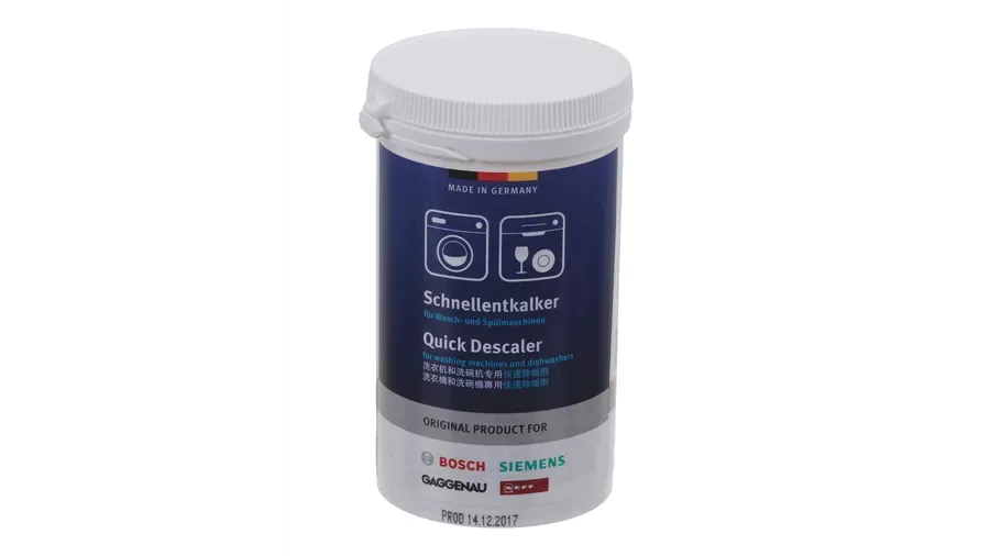Producto descalcificador para limpieza de lavadoras y lavavajillas Bosch, Balay, Siemens, Neff, Gaggenau. Accesorio original para mantenimiento de electrodomésticos de lavado.
