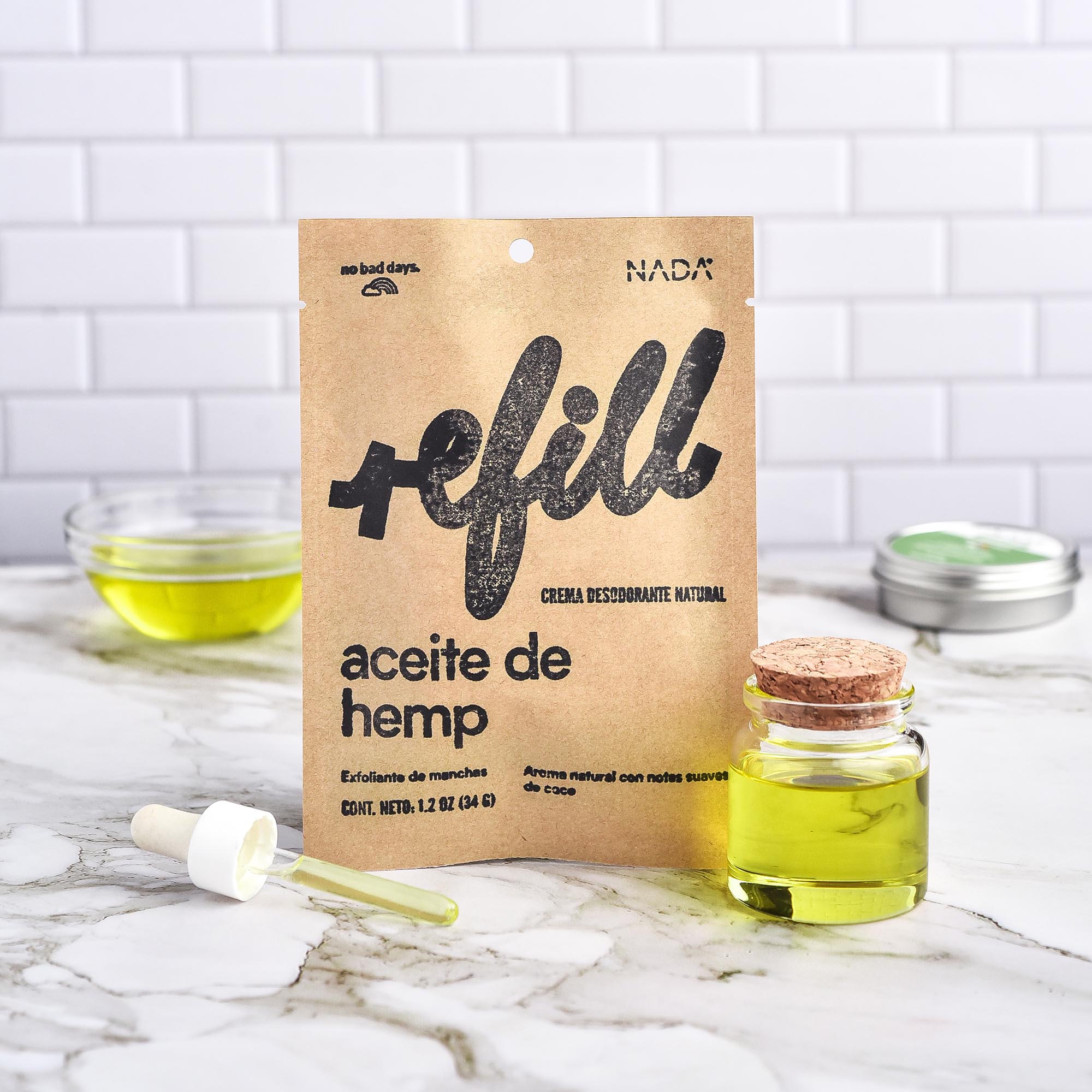 - Aceite de Hemp tiene un aroma natural, limpio, con notas suaves de coco