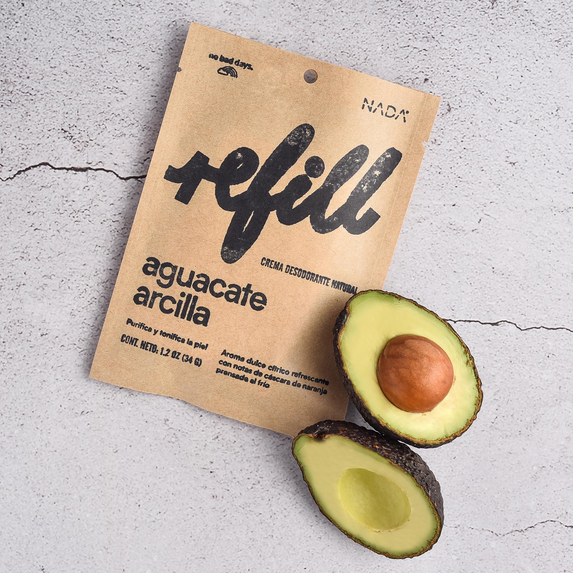 Nuestro desodorante natural Aguacate Arcilla está envasado en una bolsa kraft termosellada 100% compostable. Si eres de los nuestros y te encanta cuidar el planeta, entonces amarás el Refill. Aparte de ahorrar dinero, generarás muchísimo menos desperdicio rellenando. De hecho, no vas a generar ningún desperdicio. Lo único que tienes que hacer es remover con una cuchara el contenido de la bolsa y vaciarlo en tu envase favorito. Una vez removido todo el desodorante, simplemente deposita la bolsa en el compostero y en menos de 2 meses la bolsa se habrá descompuesto en abono orgánico. Remover y vaciar es algo súper rápido, no te tardas ni un minuto, y lo mejor es que puedes usar tu mismo envase una y otra vez, sin acumular absolutamente nada.