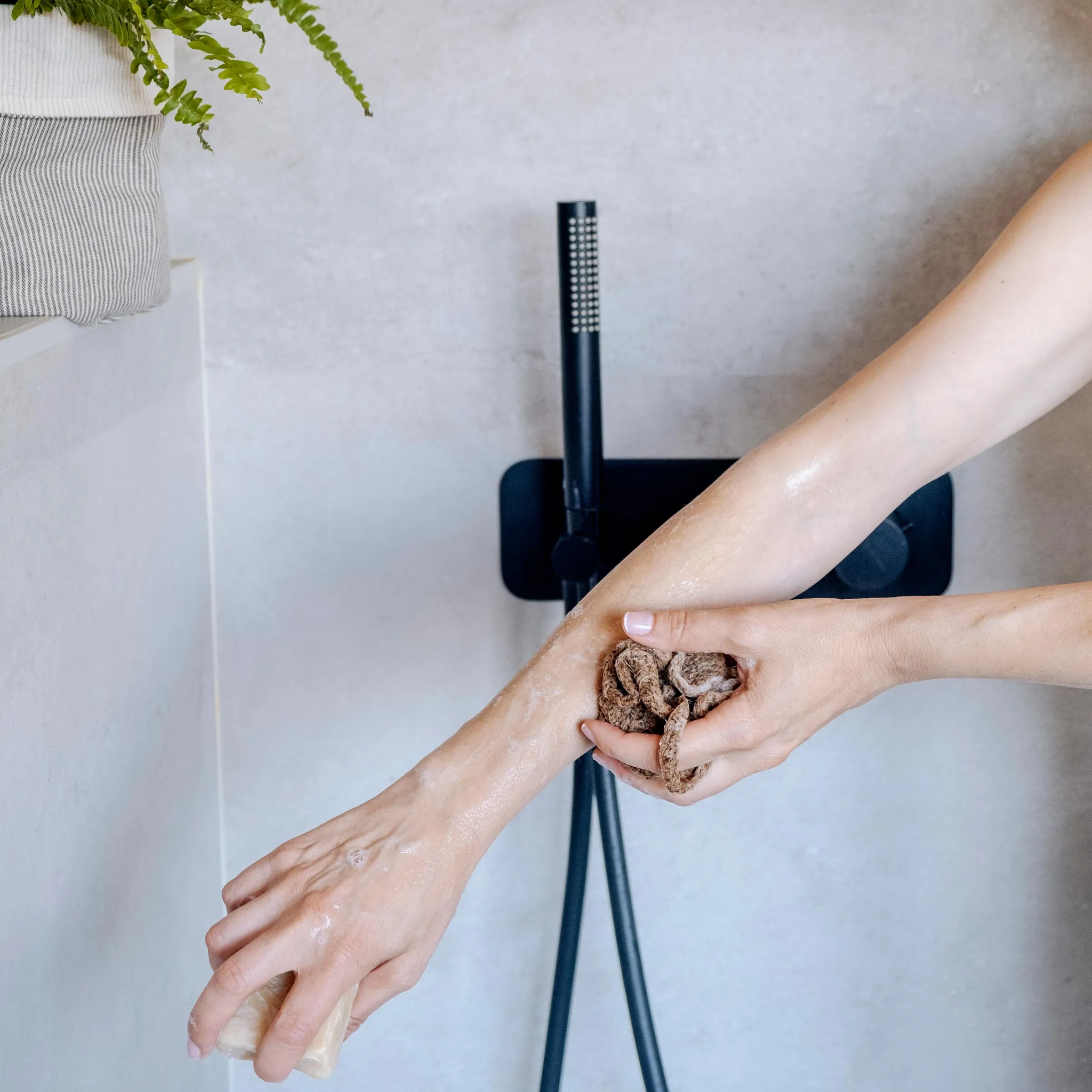 Revitaliza tu piel cada mañana y ahorra agua y jabón. Frota la barra de jabón o echa el gel de ducha directamete en la esponja para crear espuma y aplícala en tu cuerpo con movimientos circulares.