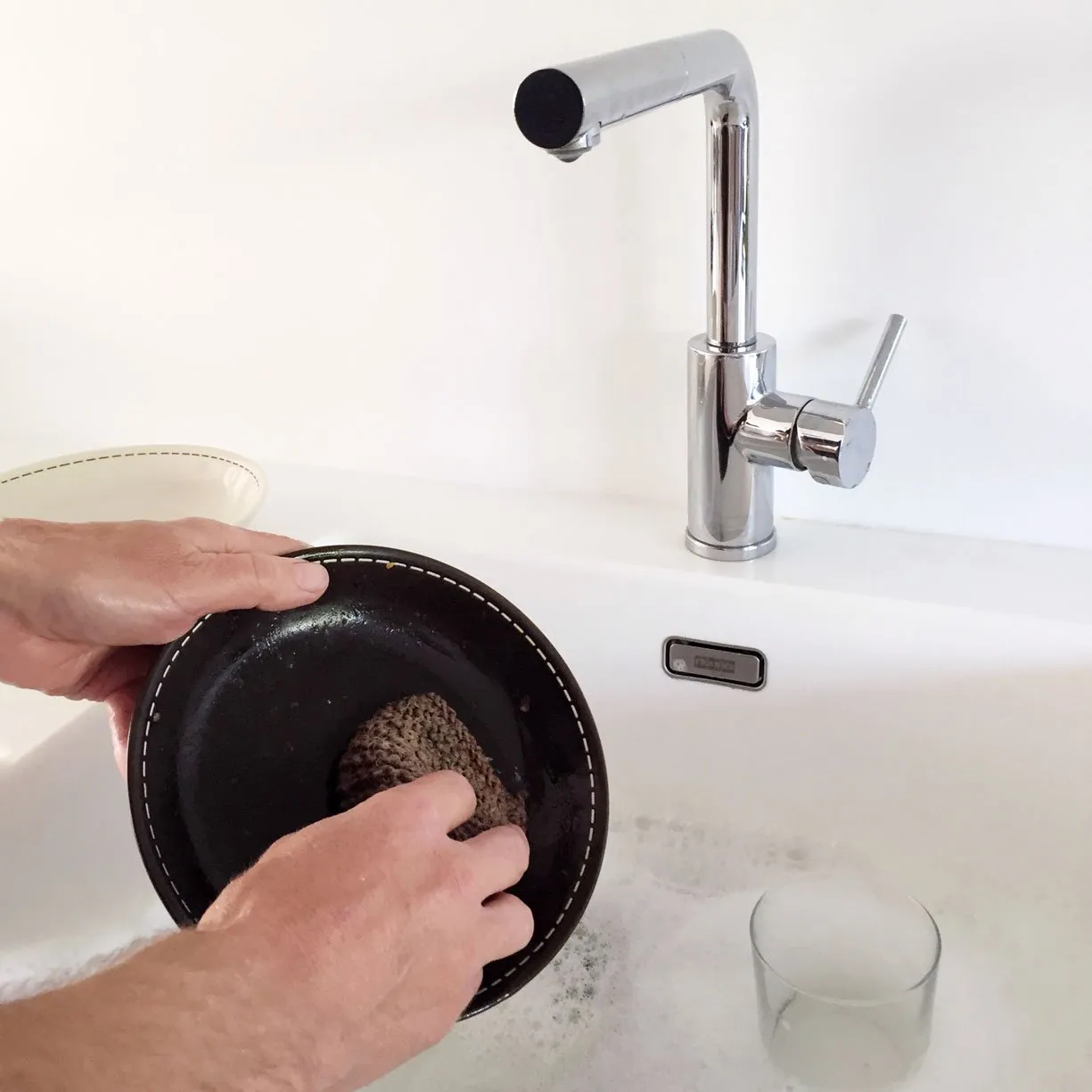 También, este estropajo natural es perfecto para limpiar los saneamientos del baño sin arañarlos de una manera rápida y eficaz.