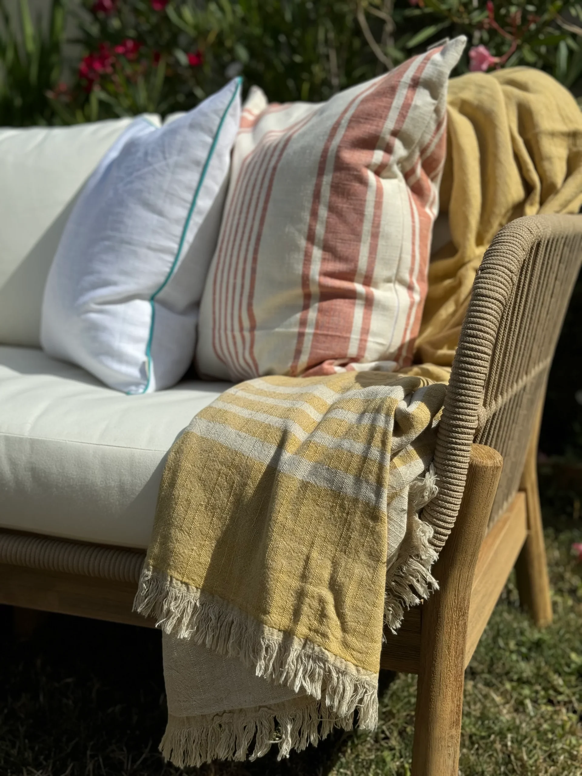 Confeccionada con lino 100%, esta línea es el complemento perfecto para cualquier espacio de tu hogar que desees realzar.