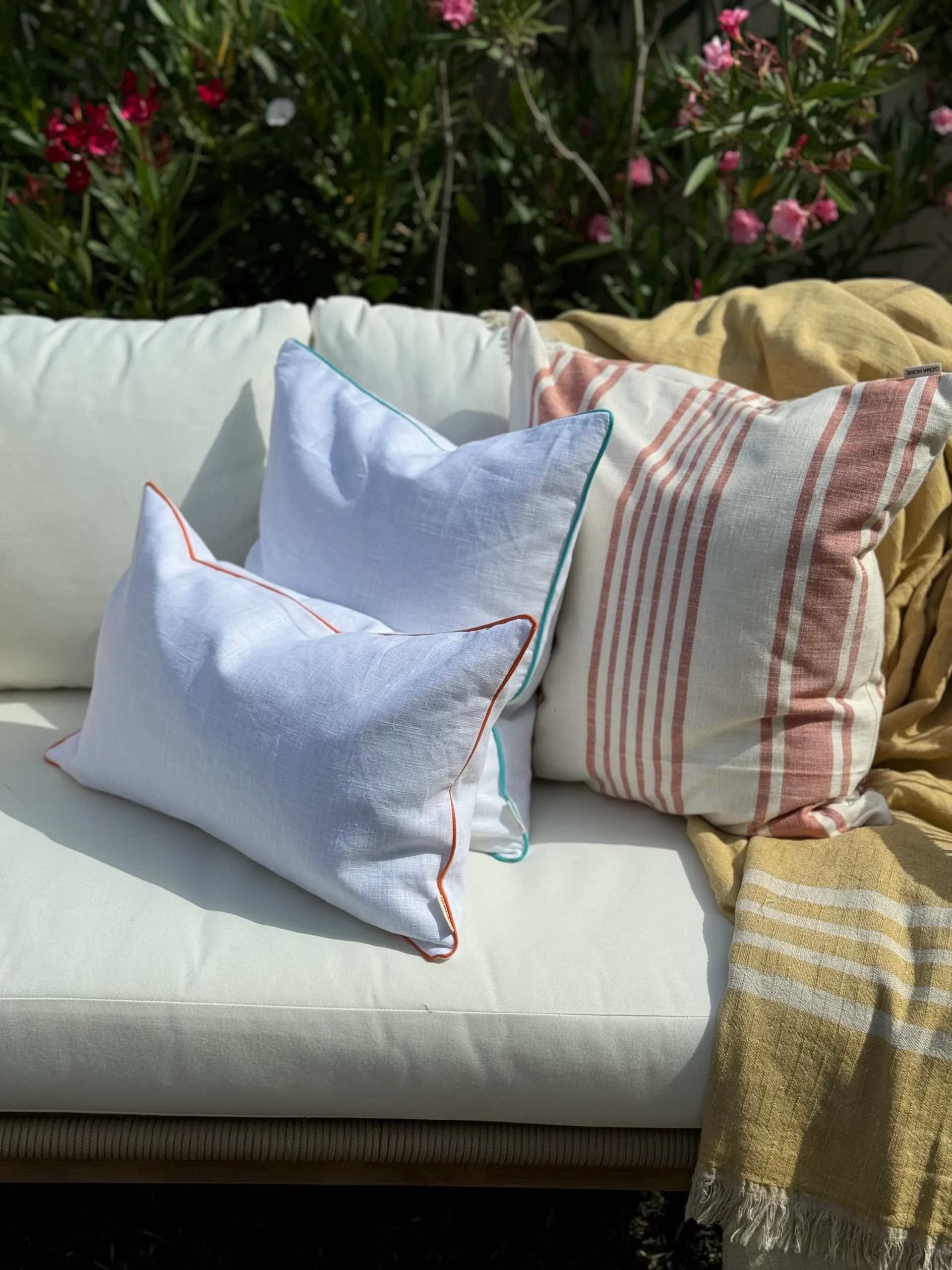 Sumérgete en la colección atemporal del mediterráneo con nuestra funda de cojín AMALFI.