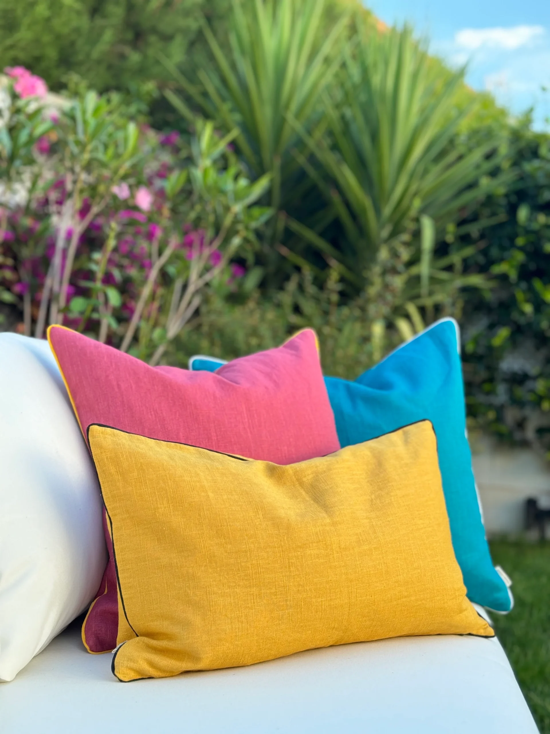 Sumérgete en la colección atemporal del mediterráneo con nuestra funda de cojín AMALFI.