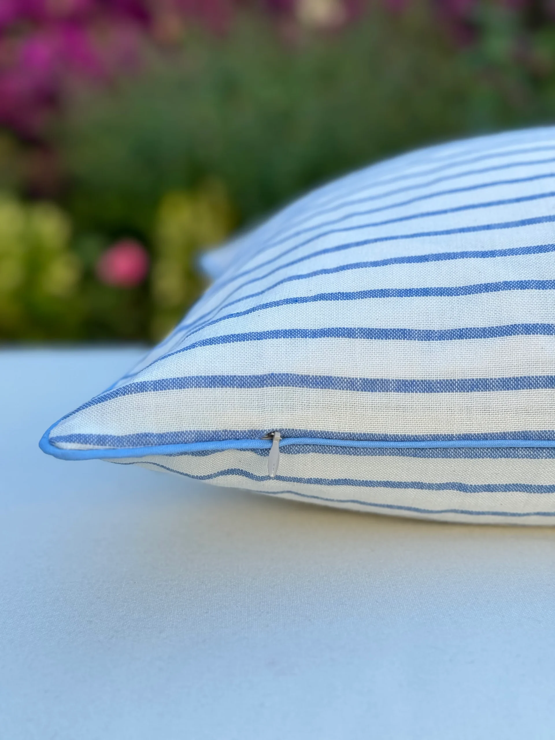 Funda de Cojín CAPRI 50×50 con ribete celeste