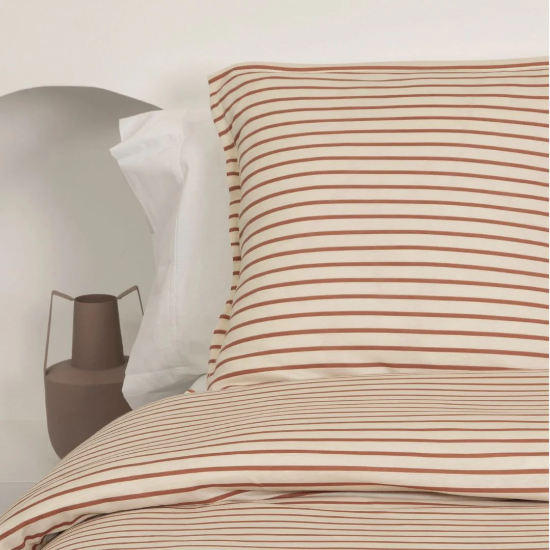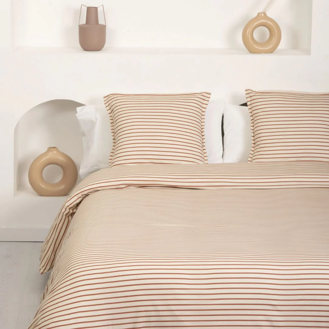 Funda nórdica SOLEA elaborada en tejido premium de punto Jersey, 100% algodón peinado de 145 g/m². Su textura ultra suave y transpirable es ideal para un descanso cómodo, además, no se arruga ni necesita plancha, ¡perfecta para aprovechar tu tiempo al máximo!