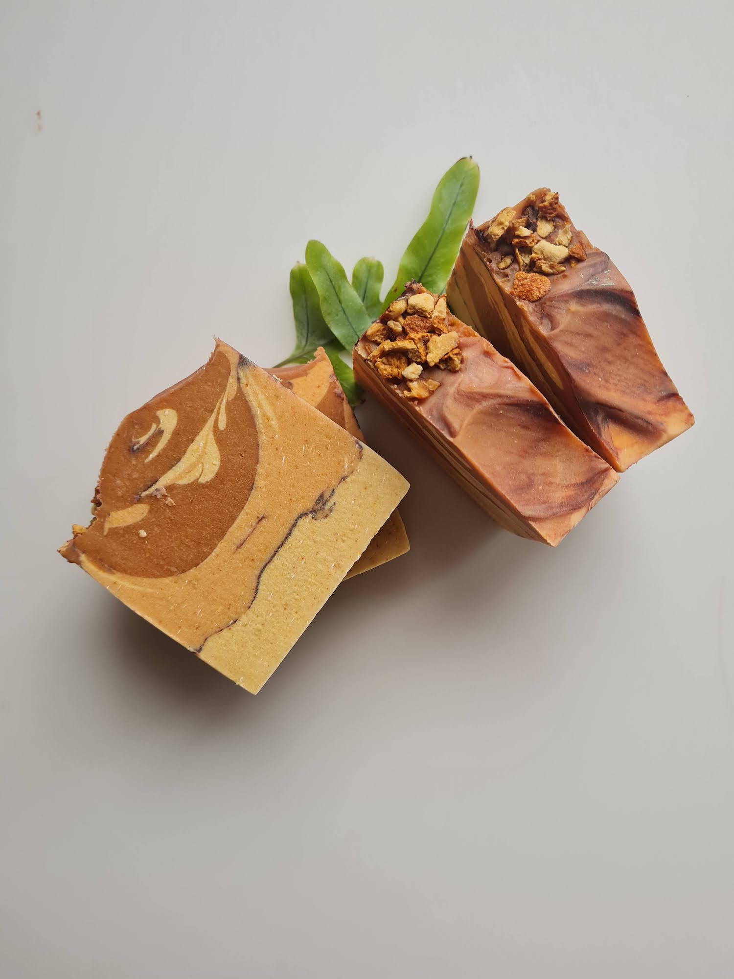 Jabón muy hidratante gracias a su AOVE, aceite de almendras, manteca de cacao y de karité, coco y ricino, con zumo y pulpa natural de zanahoria muy regenerante.