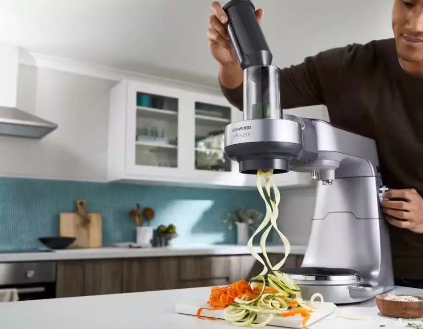 Repuesto original Kenwood – Accesorio para cortar en espiral KAX700PL. Herramienta profesional que transforma verduras en deliciosos fideos saludables con cinco cuchillas de acero inoxidable intercambiables.
