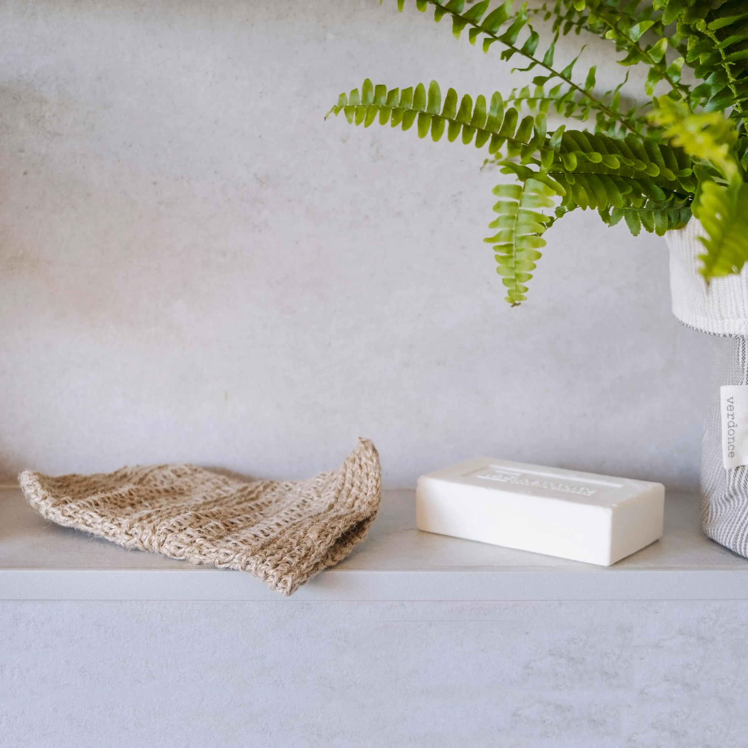 La manopla exfoliante de yute natural Verdonce elimina suavemente las células muertas de la piel y estimula la epidermis. Frota tu jabón favorito sin desperdicio y aplícalo con movimientos circulares para una acción exfoliante ligero que dejará tu piel con una sensación vibrante y suave. Experimenta la alegría de la fibra de yute natural como parte de tu rutina diaria de cuidado personal.
