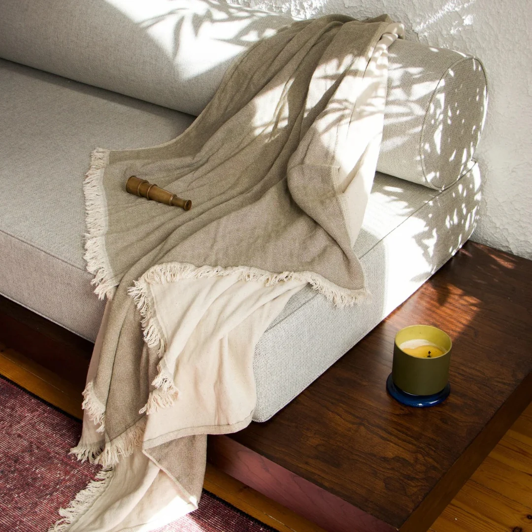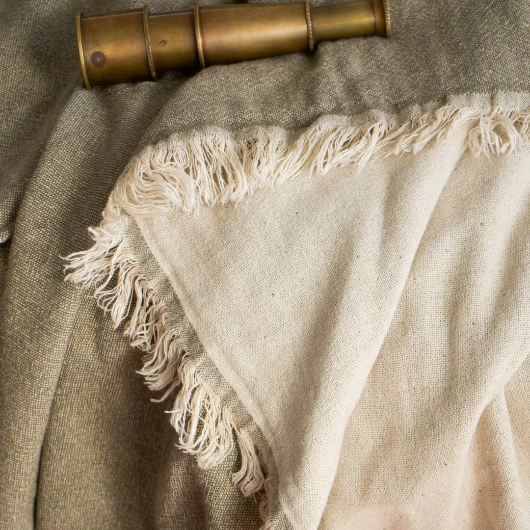 Es una manta confeccionada en lino y algodón, perfecta para añadir un toque de elegancia y confort a cualquier espacio. Su diseño ligero y suave con detalles de flecos proporciona una atmósfera relajante, ideal para momentos de descanso.