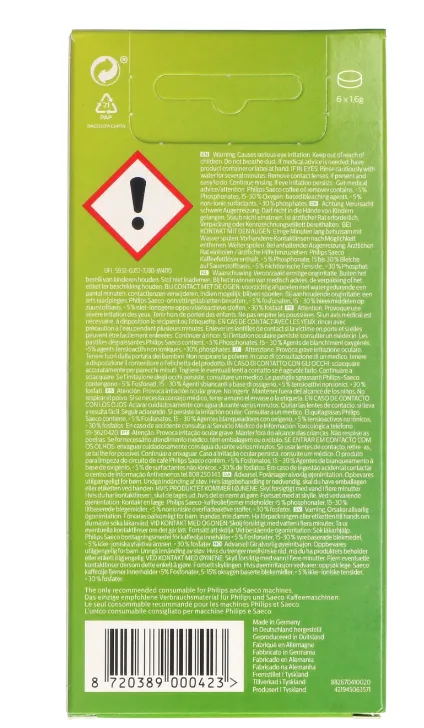 Pack de 6 pastillas quita grasas para cafetera Saeco Philips.