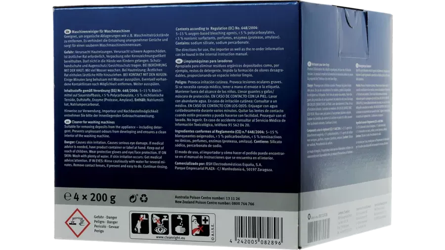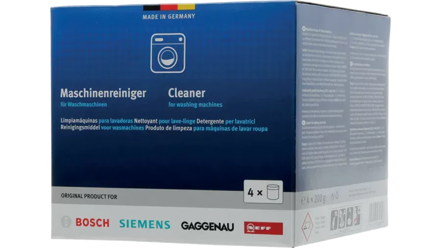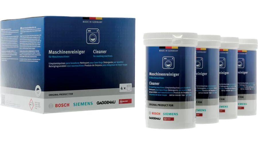 Kit de 4 unidades de limpiador en polvo de lavadoras Bosch, Siemens, Gaggenau, Neff. Accesorios original de polvo para limpieza y cuidado de lavadoras.