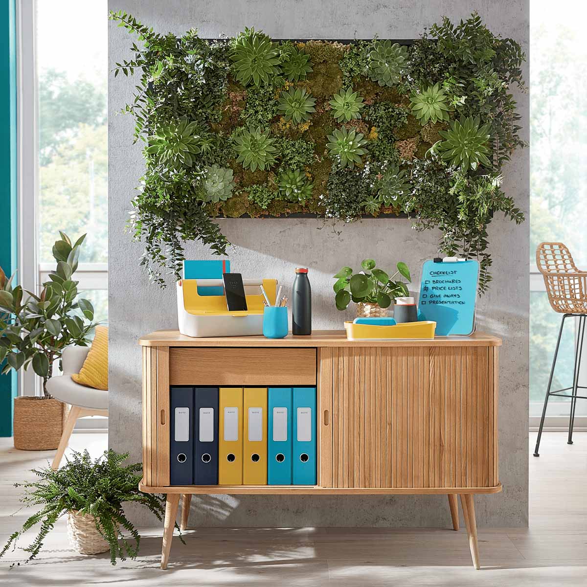 Pack perforadora + grapadora + tijeras en atractivos colores y diseño minimalista, para uso en oficinas comerciales o domésticas, de la gama Leitz Cosy, que combina perfectamente con los tableros de escritura y accesorios de oficina de la misma gama.
