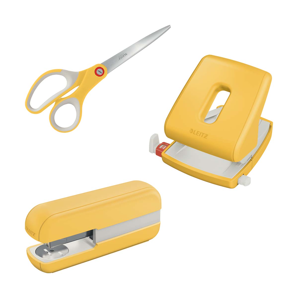 Pack perforadora + grapadora + tijeras Leitz Ergo Cosy