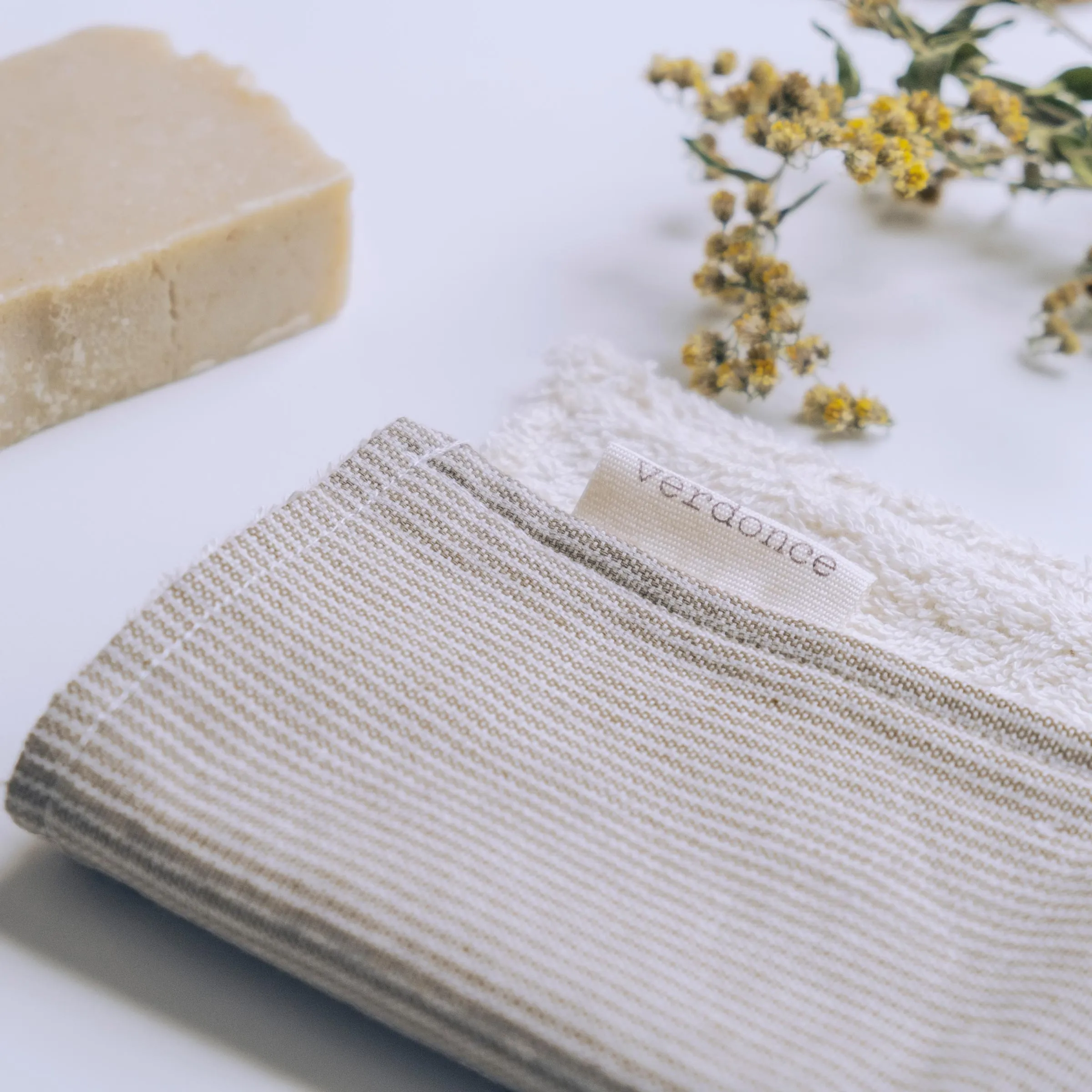 Una toalla tocador hipoalergénicas de doble cara para tu rutina de cuidado personal más sostenible. Perfectas para cara, manos y cuidado de bebés. Olvídate de las toallitas desechables sintéticas.