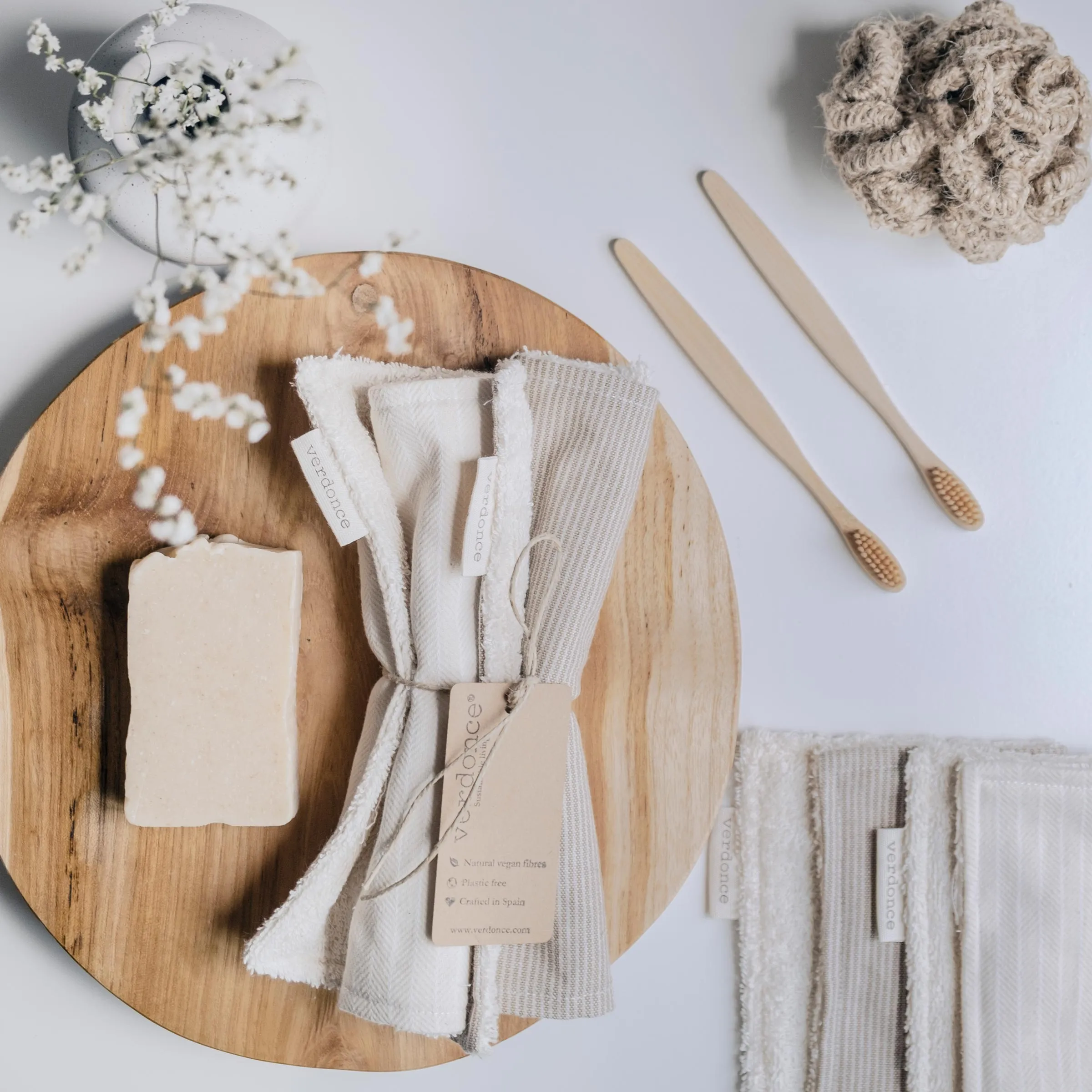 Juego de 2 toallas tocador hipoalergénicas de doble cara para tu rutina de cuidado personal más sostenible. Perfectas para cara, manos y cuidado de bebés. Olvídate de las toallitas desechables sintéticas.