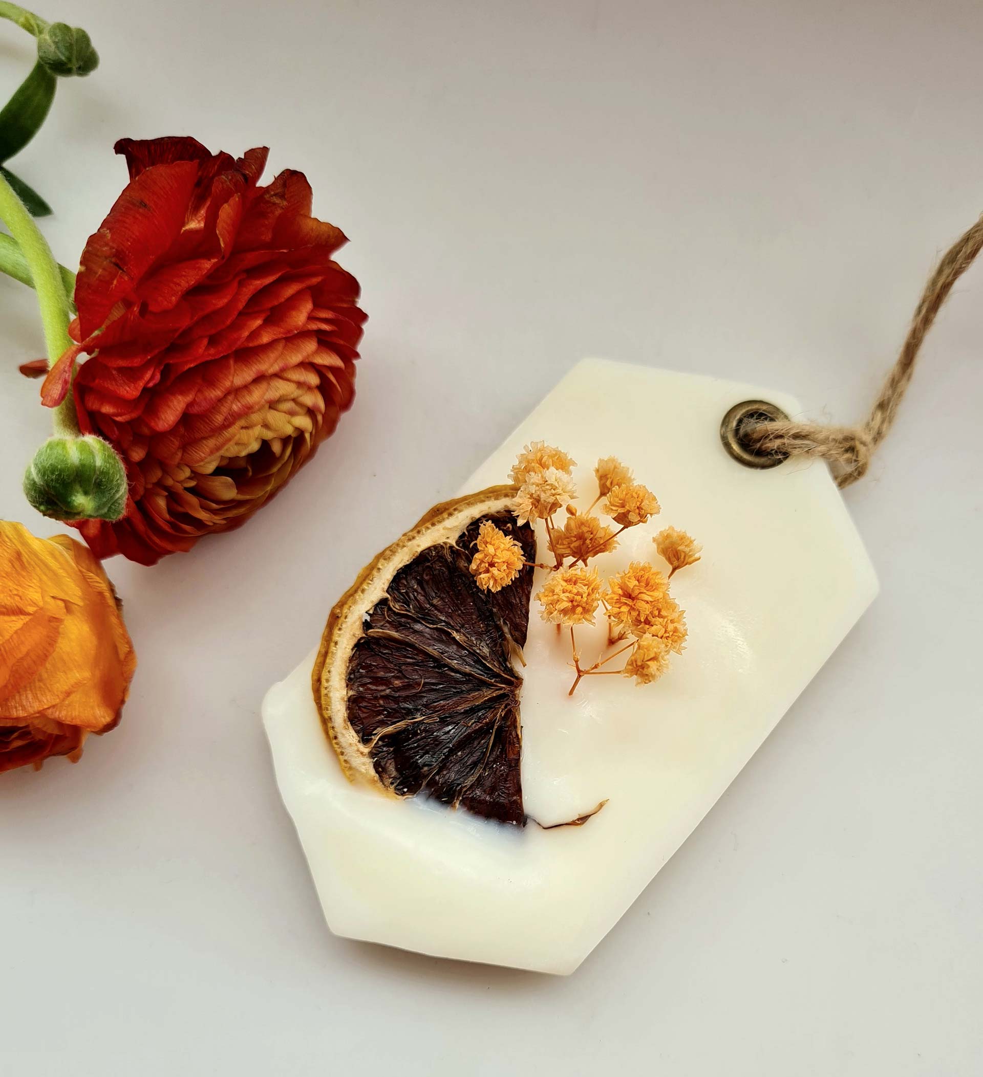 PIEZA DE CERA DE SOJA NATURAL CON AROMAS NATURALES EN BOLSITAS DE ORGANZA PARA COLGAR EN ARMARIOS O PONER DENTRO DE TUS CAJONERAS