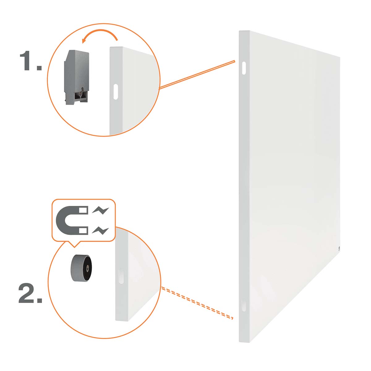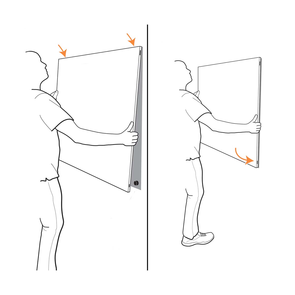 El innovador sistema de montaje magnético permite retirar las pizarras ligeras para utilizarlas en una superficie plana y volver a colocarlas en la pared en cualquier momento, lo que ofrece la máxima flexibilidad.