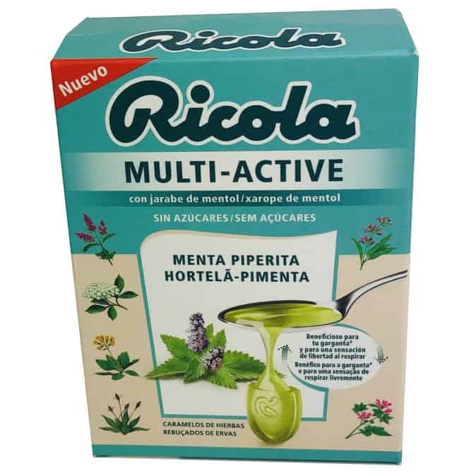 Ricola multi-active menta 51g. Son caramelos de hierbas y jarabes de menta, que tienen un efecto balsámico, suavizan y refrescan. Beneficia tu garganta y te calma mientras respiras, dándote una sensación de libertad.