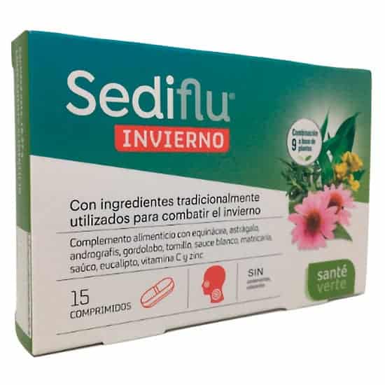 Por dosis máxima diaria (3 comprimidos): E.S. Equinácea (4% Polifenoles) Echinacea purpurea (L.) 900 mg E.S. Astrágalo (16% Polisacáridos) Astragalus membranaceus Moench. 810 mg E. S. Andrografis (5% Andrografólidos) Andrographis paniculata (Burm. f.) 450 mg Vitamina C 242,4 mg 303 %E.S. Gordolobo Verbascum thapsus L 225 mg E.S. Tomillo Thymus vulgaris L. 210 mg E.S. Sauce blanco Salix alba L 60 mg E.S. Matricaria Tanacetum parthenium (L.) 49,5 mg E.S. Saúco Sambucus nigra L 30 mg Zinc 15 mg 150 %A.E. Eucalipto 15 mg Eucalyptus radiata Sieber ex DC (Aceite esencial)