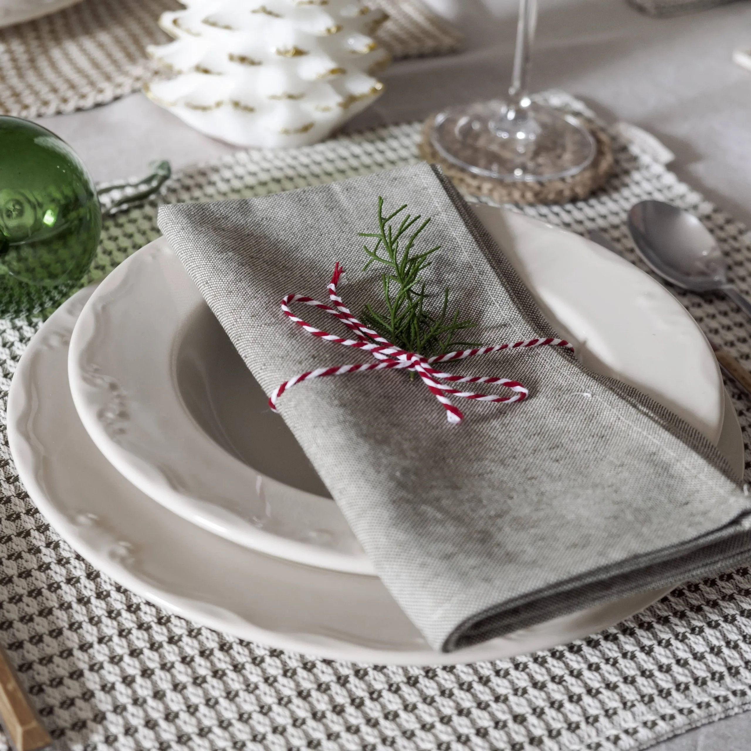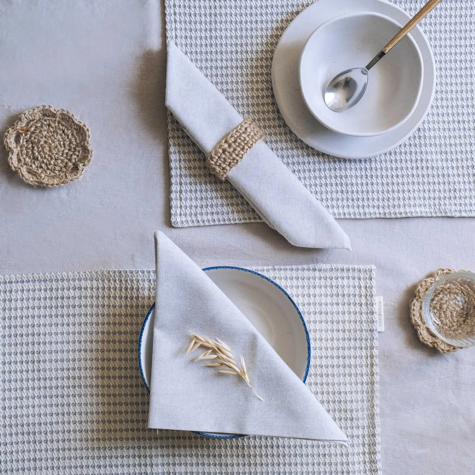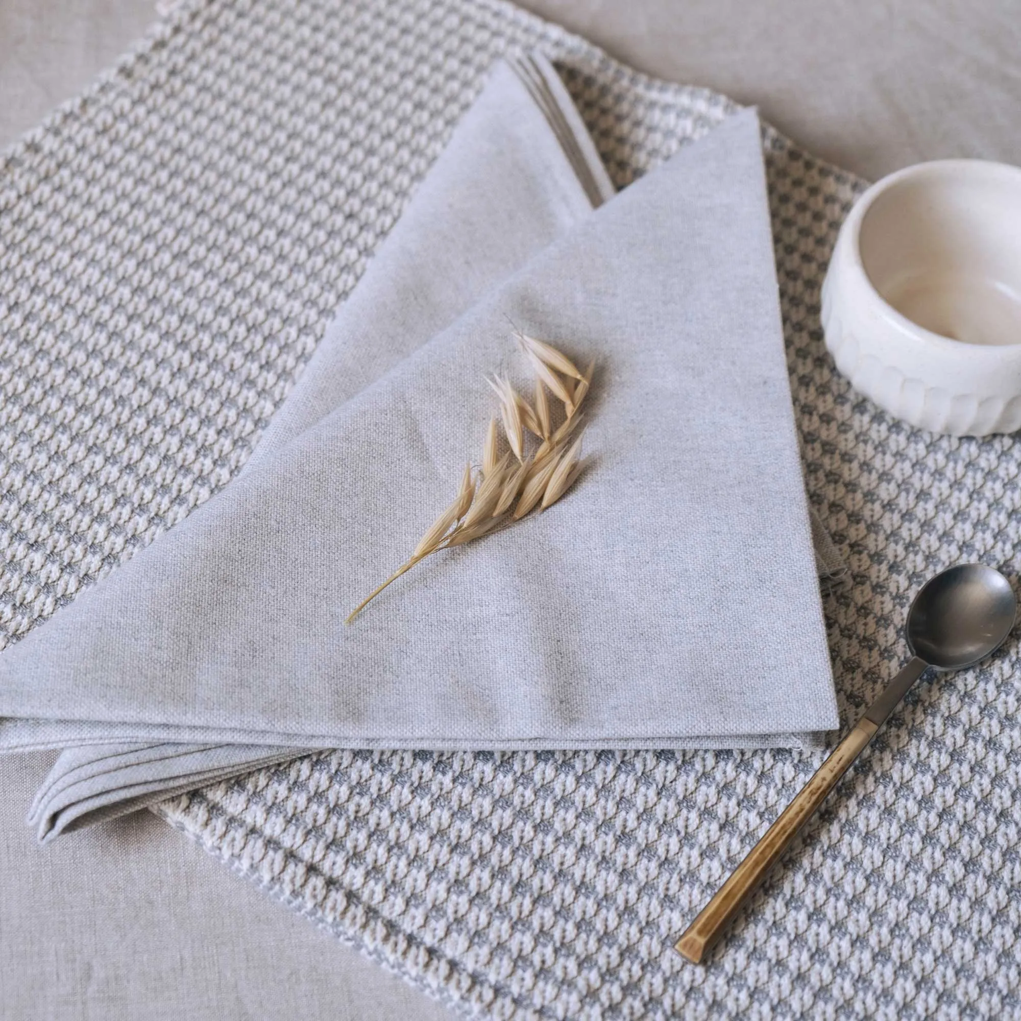 Pack de dos servilletas de tela hechas éticamente en España a partir de algodón 100% reciclado. Diseñadas para trascender las temporadas y las tendencias, estas servilletas elegantes aportarán un toque mediterráneo a tu mesa sostenible.