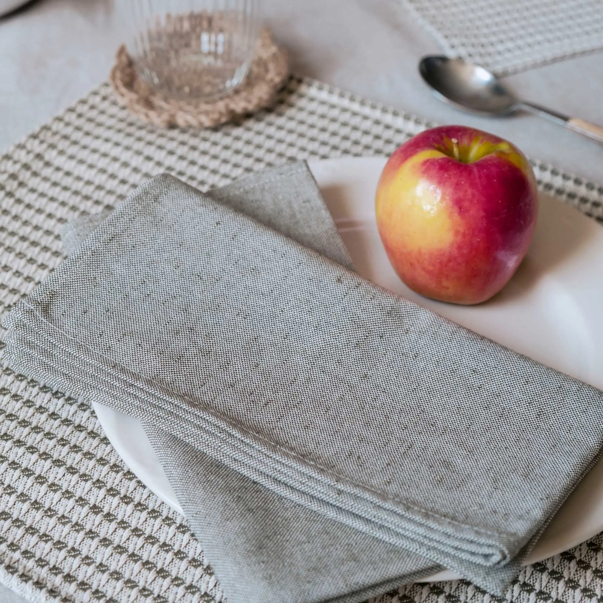 Cada servilleta está confeccionada con algodón 100% reciclado español. El algodón reciclado es muy sostenible porque damos una nueva vida al algodón que ya existe (upcycling), descomponiéndolo y hilando nuevos hilos para crear nuevos tejidos. Esto significa: 0% de uso directo de agua, 0% de uso de productos químicos y bajada considerable de emisiones de CO2.