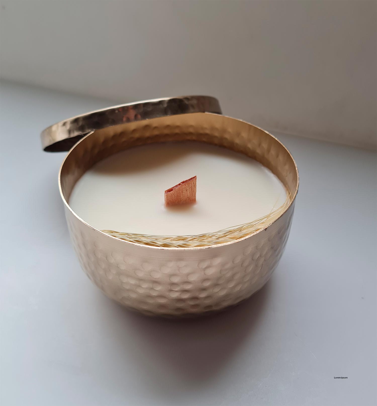 En lata de latón reutilizable con tapa, elaboradas con cera de soja de baja fusión y perfumadas con aromas naturales y aceites esenciales.