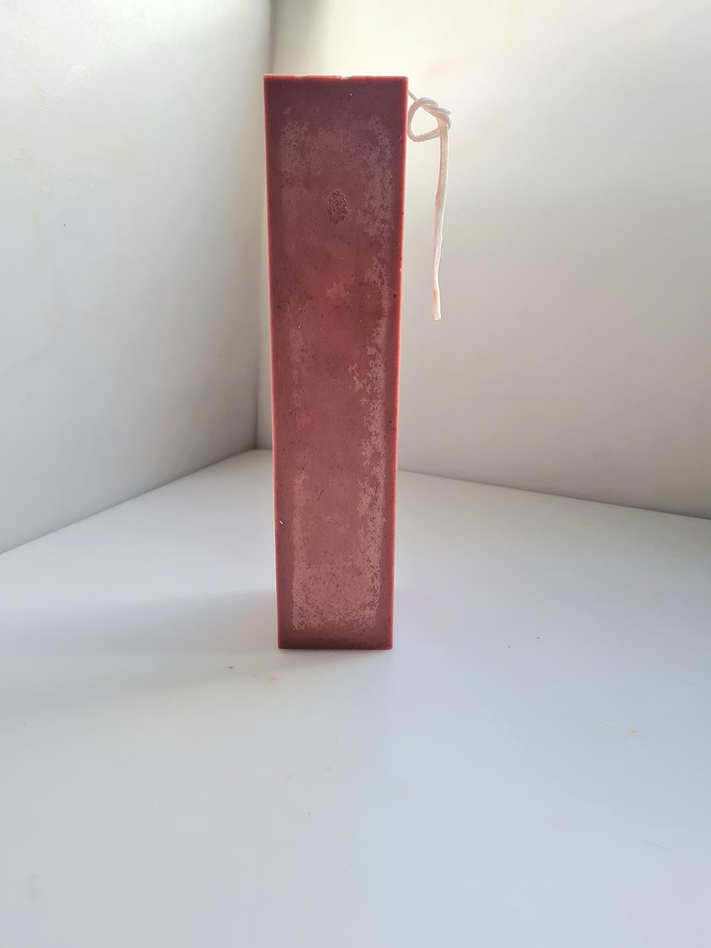 Vela de líneas rectas, con pigmentos naturales o neutra, sus colores tienen » vida» y cambian según pasa el tiempo.