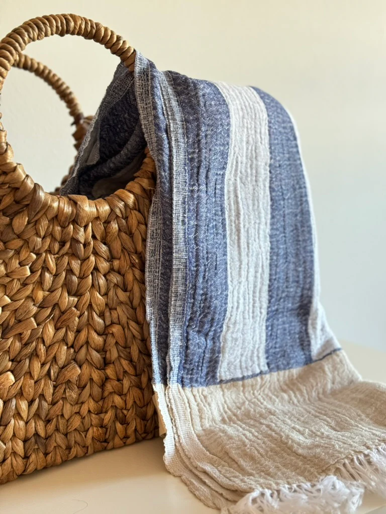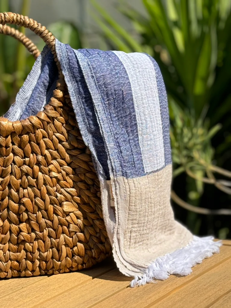 Presentamos nuestra toalla de playa Nereida, donde la elegancia del diseño inspirado en el mar se fusiona con la suavidad natural del algodón 100%. Esta toalla es una pieza excepcional, que combina tonos serenos y detalles delicados, evocando la tranquilidad y belleza de la costa en cada uso.