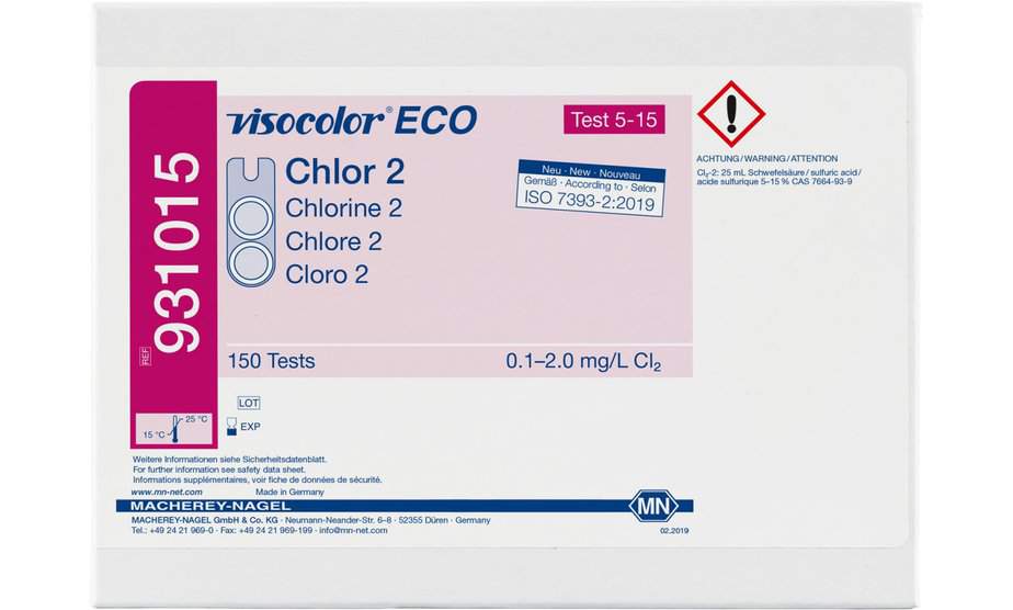 Visocolor Eco Test Kit Cloro 150 Test, es un Kit para la determinación colorimétrica del cloro libre y del cloro total en aguas.
